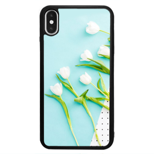 Θήκη Apple iPhone Xs White Tulips Black Glossy