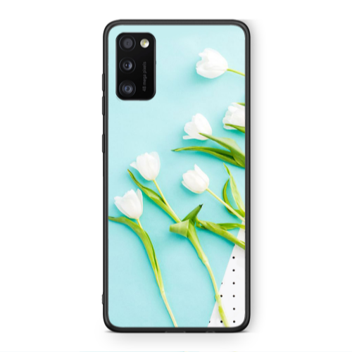 Θήκη Samsung A41 White Tulips Black Glossy