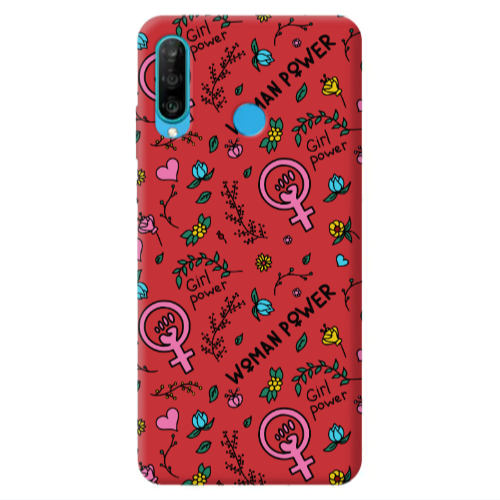 Θήκη Huawei P30 Lite Woman Power Red Colored Silicone TPU